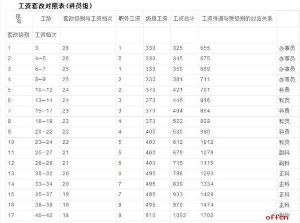 請(qǐng)點(diǎn)擊此處輸入圖片描述 通過以上的兩幅圖,可以看出,工齡越大,工資檔次就越高,職務(wù)工資就越高,級(jí)別工資也就越高。工齡是指職工以工資收入為生活資料全部來源或主要來源的以年為單位的工作時(shí)間,工齡是我國(guó)職工退休的一個(gè)條件。也是行政事業(yè)單位,國(guó)有企業(yè)工資計(jì)算的內(nèi)容之一,公務(wù)員考試網(wǎng)提醒各位要重點(diǎn)關(guān)注這一方面。 (責(zé)任編輯:admin) |